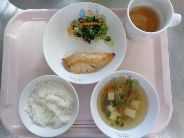 ごはん、豆腐と野菜のスープ、魚の香味焼き・・・326kcal