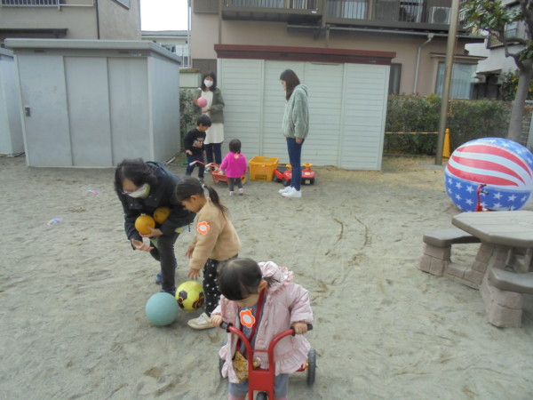 今日は大雪(たいせつ)本格的な冬の始まりです。太陽がかくれんぼすると、寒さが増しますね((+_+))地域のお友だちはコートを脱ぐお友だちがいたり元気いっぱいです‼優しい親子の姿をたくさん見ることが出来て楽しい時間です。体操もお話もみんな上手です。