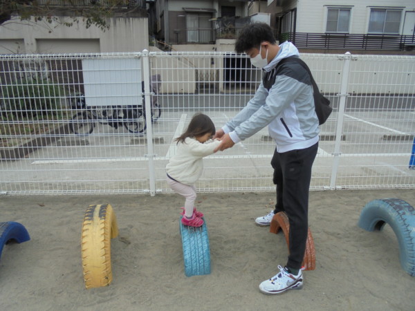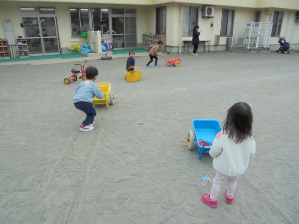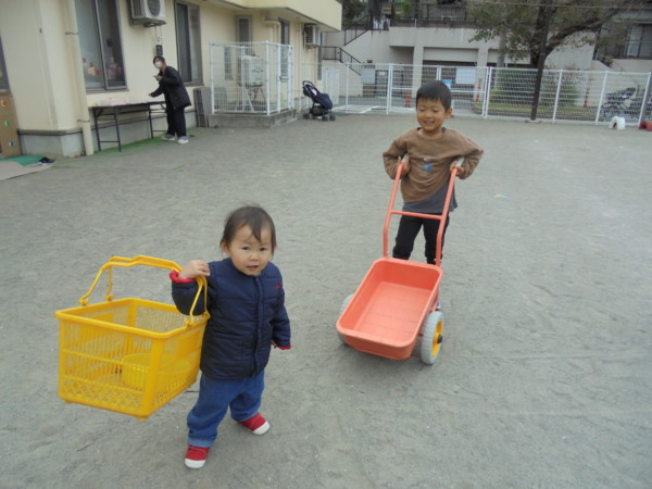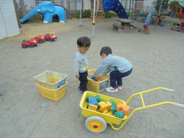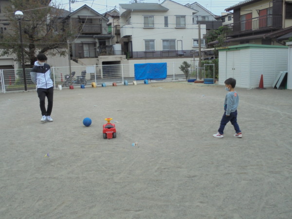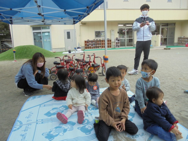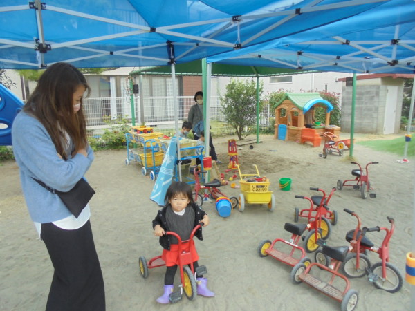 連日の保育園の解放。今日は雲が多く、ちょっと肌寒い感じがしましたが、みんな元気いっぱい! 幼稚園がお休みのお友だちも来てくれたので、にぎやかな開放になりました。開放に来ていただいたパパに、ミニミニサッカー教室をしていただきました。体を動かして楽しかったね。手押し車とかごを出して、お買い物ごっこかな? パネルシアターは、そっくりさん。歌に合わせて「見つけっこ」すぐに見つかってしまいました。1時間があっという間に過ぎてしまいましたね。来週は魔法のレンジをしま~す。お・た・の・し・み・に。