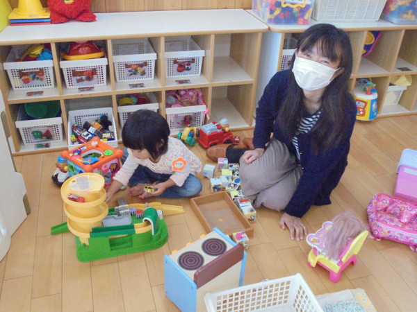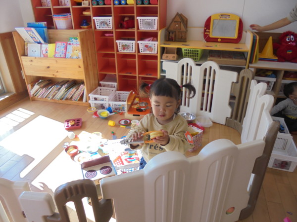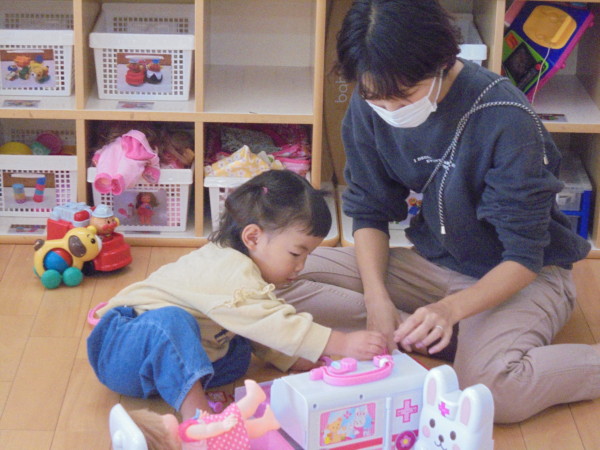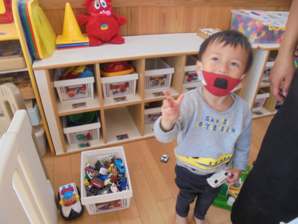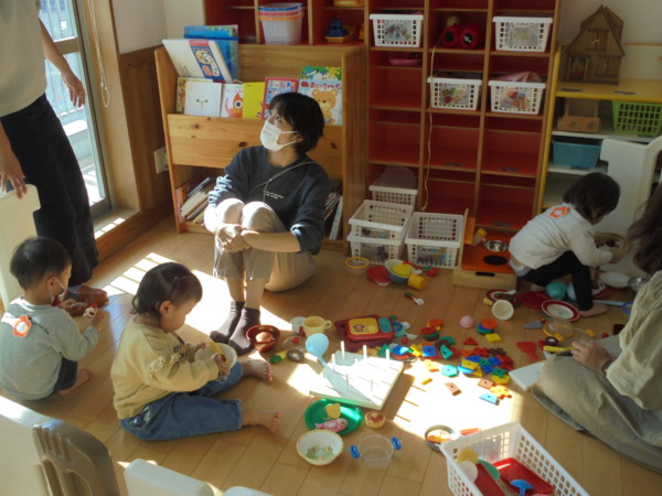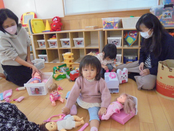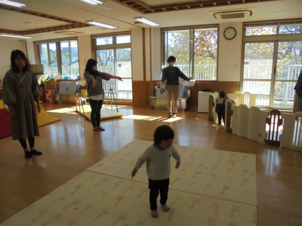 今日は、月1回の園舎開放日です。多目的ホールから見えるポプラの木も色付き秋本番です。いつもの園庭とは違い”あのおもちゃ” ”このおもちゃ”が気になって・・・はじめはちょっと静かだったお友だちもだんだん慣れてきて、いっぱいのおもちゃに囲まれてニコニコ笑顔です。アヒルの体操・バナナ君体操では子ども達よりもママ達が頑張ってくれましたが、一番前で頑張ってくれるお友だちもいてみんなの笑顔を引き出していました。楽しかったかな?これからもいっぱい遊ぼうね!!