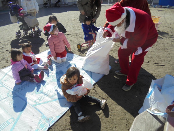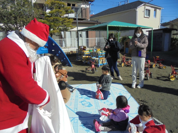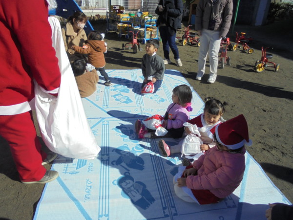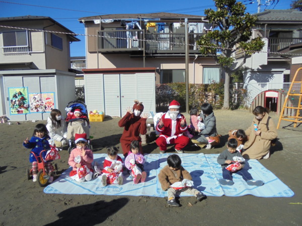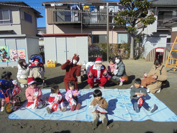 アンパンマンの袋やツリーにたくさんのぬいぐるみを飾ったり、エプロンシアターはいかがでしたか? 一番楽しみにしていたサンタさん、一人ひとりにプレゼント♡ 初めて会うサンタさんにビックリするお友だちもいましたが、緊張しているみんなの笑顔が印象的でした。「ありがとう」も言えて、えらかったね。作り物はお家でみんなで作ってくださいね。楽しいクリスマスをお過ごしください。 メリークリスマス!