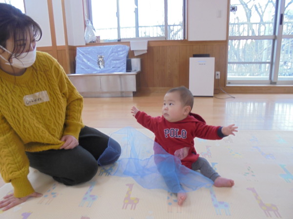 今年初めての赤ちゃん教室。多目的ホールでラララぞうきん体操からはじまりはじまり~ 布を使って「いないいないばあっ!」おもちゃでも遊びました。身体をいっぱい動かして、くたびれたかな? また、31日に赤ちゃん教室があります。遊びに来てください。
