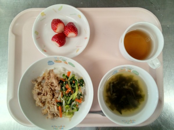 ビビンバ丼、わかめスープ、いちご・・・313kcal