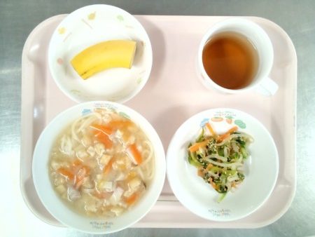 味噌煮込みうどん、もやしのごま和え、バナナ・・・342kcal