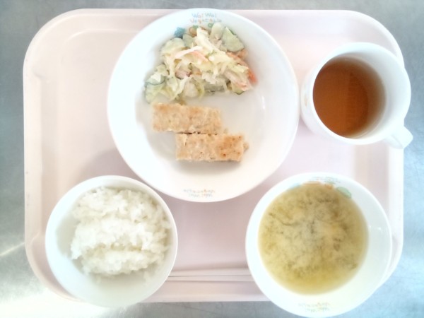ごはん、味噌汁、松風焼き、シルバーサラダ・・・&56kcal
