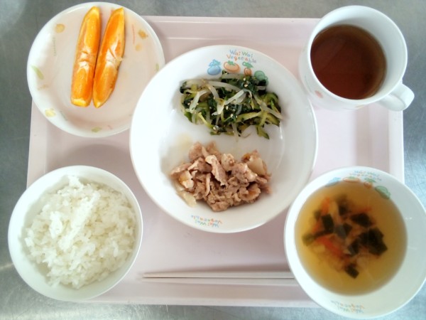 ご飯、中華スープ、豚肉のマーマレード煮、ナムル・・・322kcal
