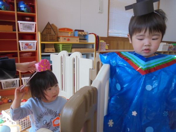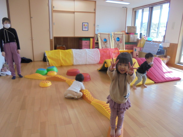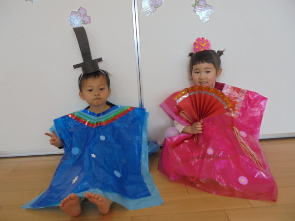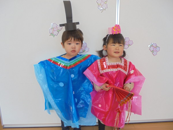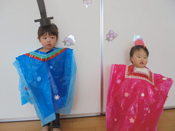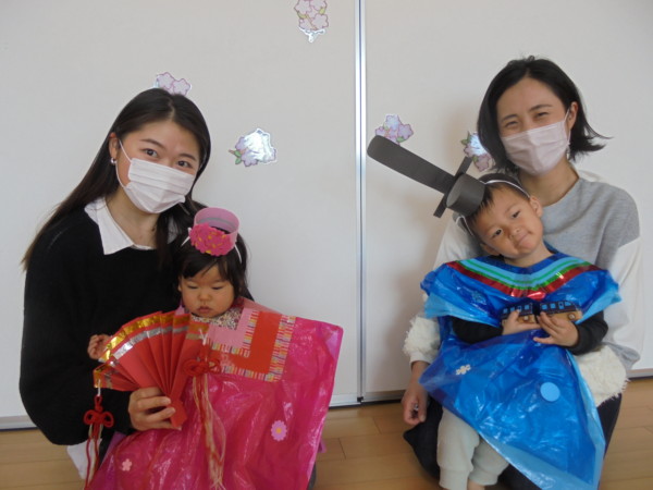 3月最後の園舎開放。おもちゃに目を輝かせて楽しそうに遊ぶ子どもたち。コロナでさみしかった多目的ホールがコロナ前のように様に賑やかになりきっと多目的ホールも喜んでいると思います😊だんだんコロナが落ち着き、このような時間がもてるといいですね。今日はお雛様の衣装を着て記念写真をとりました。本当にかわいい姿に心がウキウキしました。