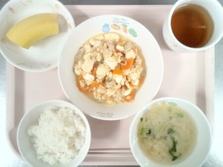 ごはん、味噌汁、いり豆腐、バナナ・・・402kcal