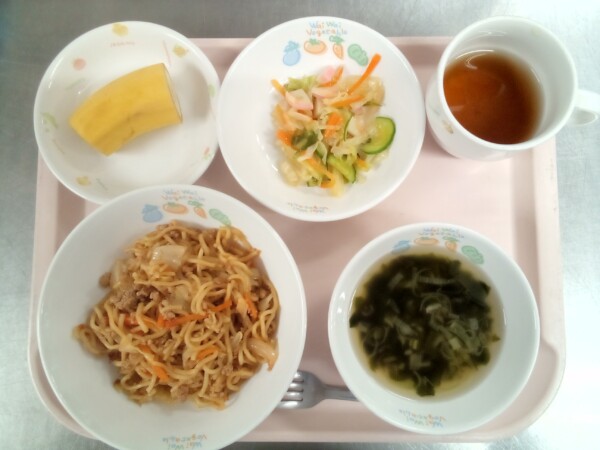 カレー焼きそば、わかめスープ、千草和え、バナナ・・・276kcal