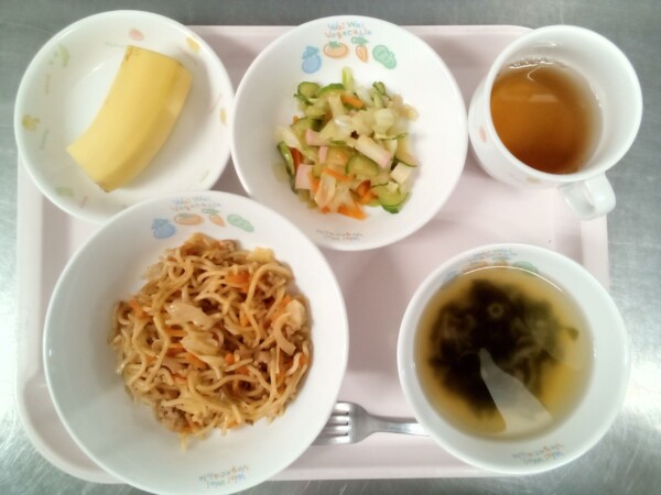 カレー焼きそば、わかめスープ、千草和え、バナナ・・・276kcal
