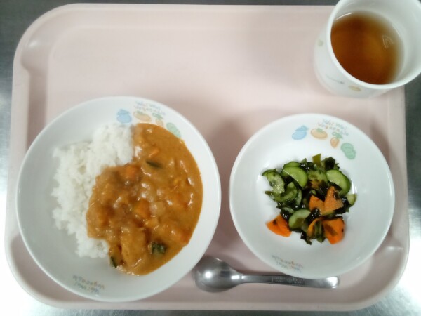 ごはん、夏野菜カレー、酢の物・・・438kcal
