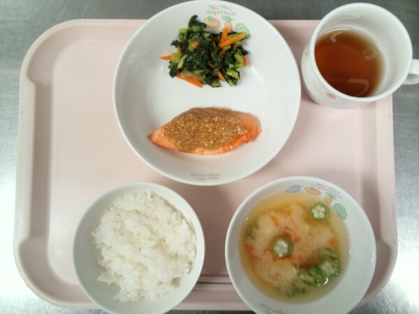 ご飯、味噌汁、魚のごま味噌だれ、お浸し・・・318kcal