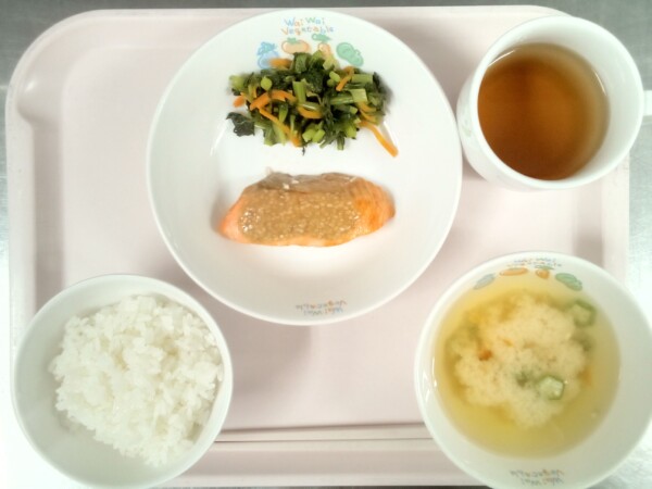 ごはん、味噌汁、魚のごま味噌だれ、お浸し・・・318kcal