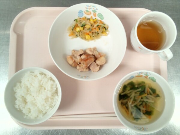 ごはん、中華スープ、ジンジャーチキン、春雨ソテー・・・305kcal