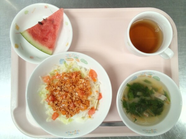 タコライス風、ほうれん草の野菜スープ、すいか・・・364kcal