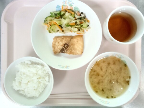 ごはん、味噌汁、魚の南部焼き、和風サラダ・・・356kcal