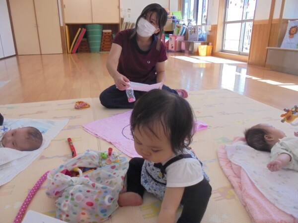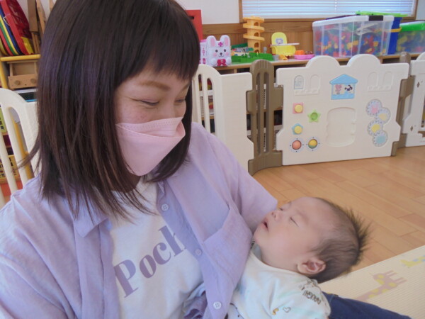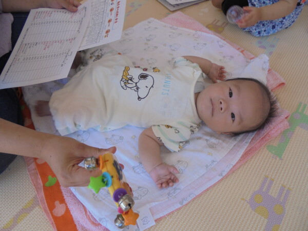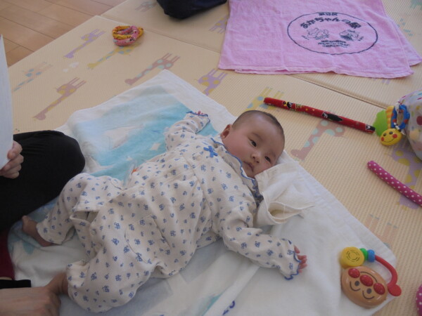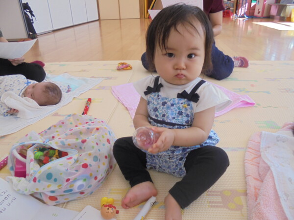 今日は3人のお友だち。お母さま方も、色々お話が出来てとても和やかな雰囲気でした。栄養相談もあり、栄養士の先生も参加していただき、ちょっと心配な事、保育園での離乳食など聞かせていただきました。2回目、3回目とお母さま方とお話できたらと考えています。よろしくお願いします。初めての手形・足形も取りました。