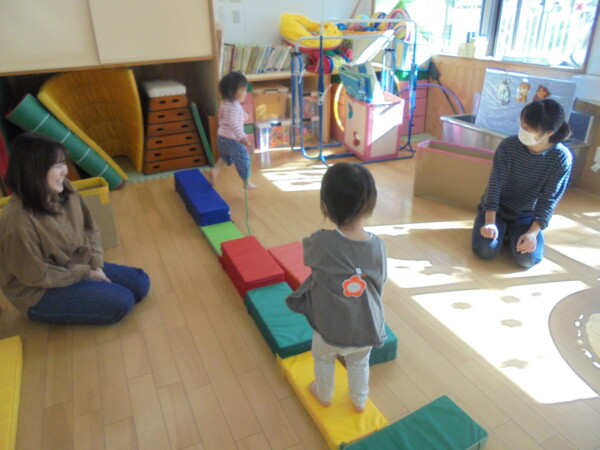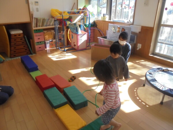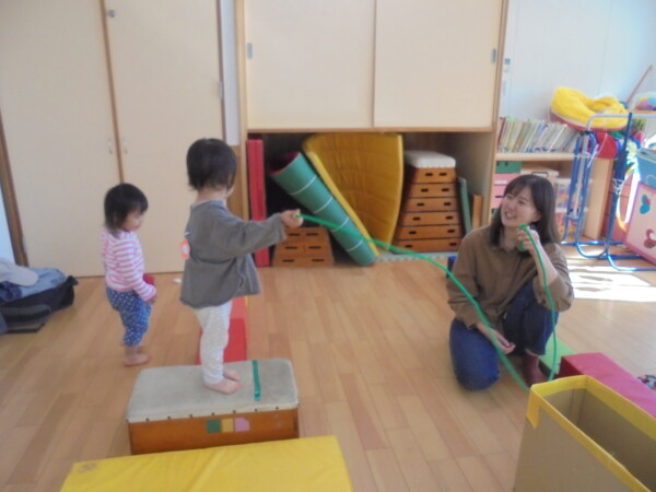 今日はゆったりと子どもたちと過ごしました。たのしいね!ゴロンとするとお隣でもゴロン。自由にペンを使ってお絵描きをしたり、ブロックの上で縄跳を使って遊んでいるお友だち。ニコニコ笑顔がとても印象的でした。バックミュージックで、ゆび忍者が始まると、自然と輪が広がっています。みんな、とっても上手でした。また遊びに来てね。まってま~す!