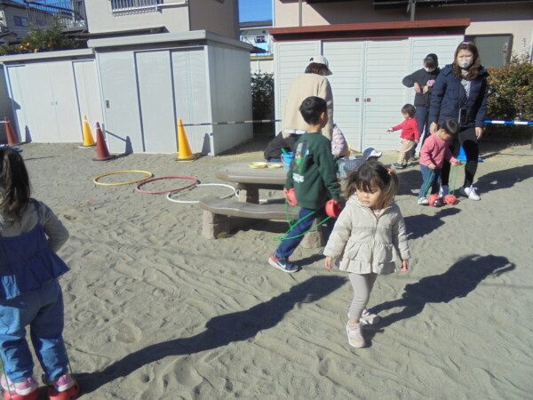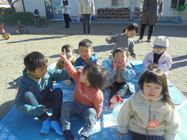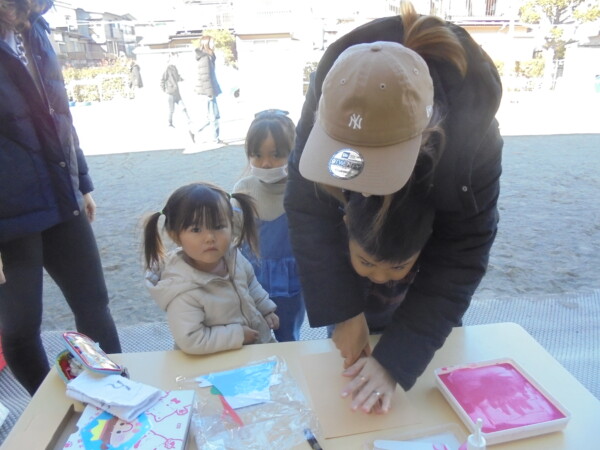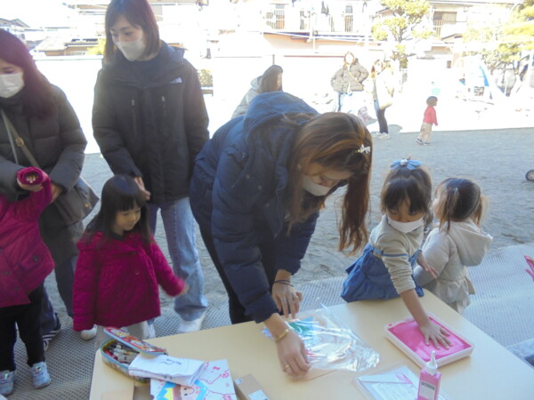 今日はたくさんのお友だちが保育園にきてくれました。元気な声があちらこちらから聞こえます。新年一回目の園庭開放。手型で初日の出を作りました。大きな手、かわいい手、思い出になってくれれば嬉しいです。今年も一年どうぞよろしくお願いします。