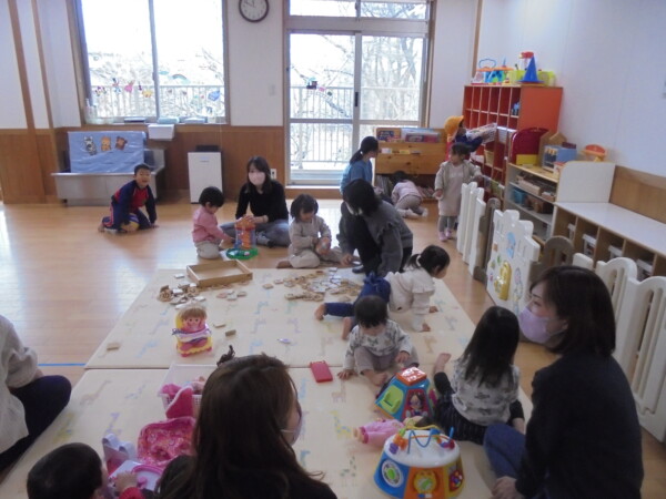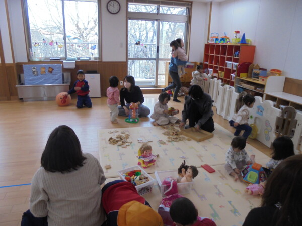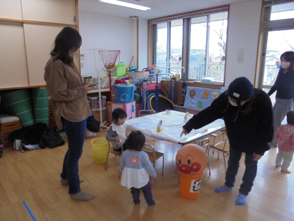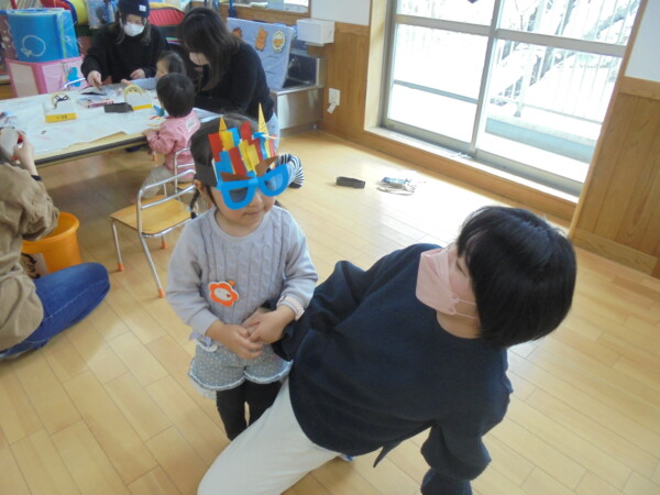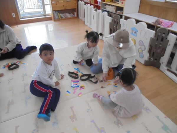 たくさんのお友だちが節分の行事に参加してくれました。時間がきたらすぐお片付けをし、お面つくりを始めました。みんなの協力が必要なちょっと難しいお面つくり。みんなの頑張りもあって、世界に一つのかっこいい鬼のお面が出来ました。最後に鬼のパンツの踊りを踊ってから、鬼のパネルに、おもいっきりボールを投げました。泣き虫オニ・いやいやオニ・おこりんぼうオニ・ご飯好き嫌いオニも今日でさようなら。かっこいいオニと、ニコニコオニだけがのこっているよ♪明日からまた元気いっぱい遊ぼうね。ママたち、ご協力ありがとうございました。