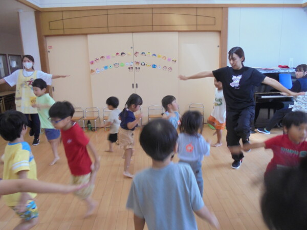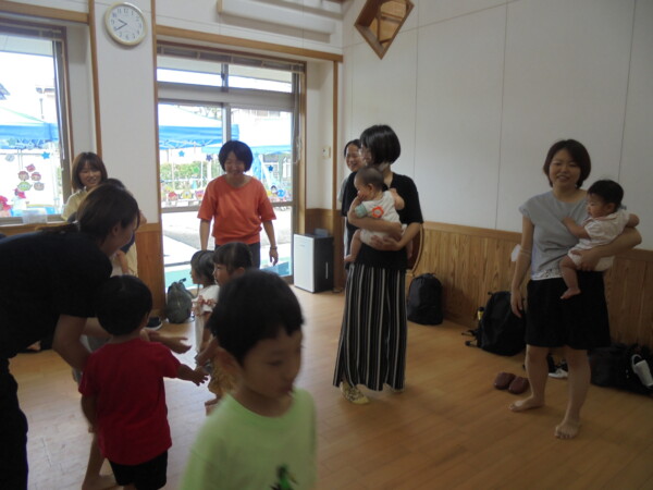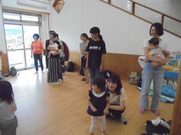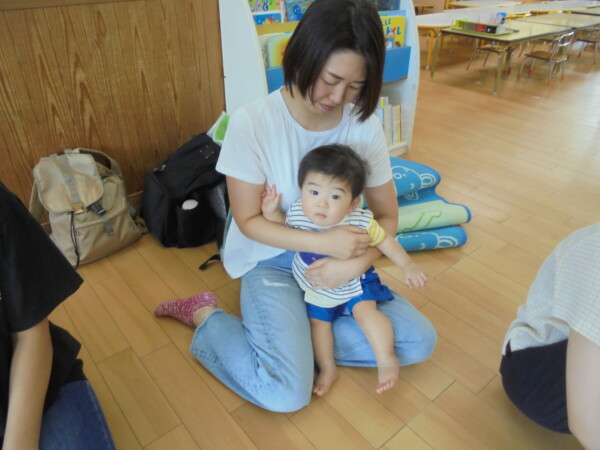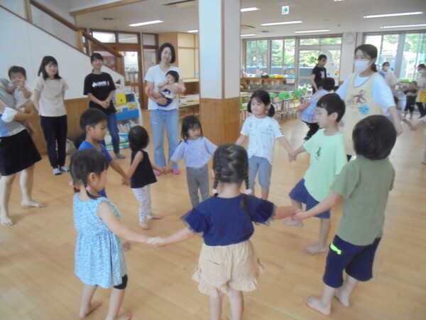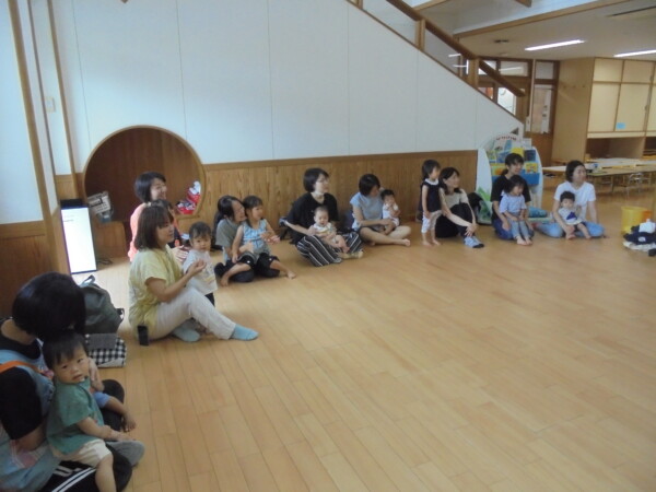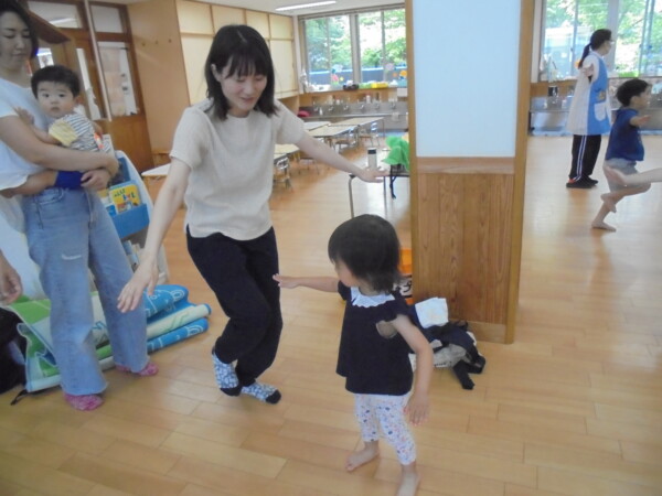 コロナ前は行っていたリズムです。保育園のお友だちと地域のお友だちとの交流保育、久しぶりです。0歳のお友だちも多くどういう、形になるか心配でしたがあっという間に打ち解け、ママたちのニコニコ笑顔が印象的でした。また、ママたちからもとってもよい企画ですね、楽しかった!という声をいただきました。次回に繋げていきたいと思います。参加お待ちしております。