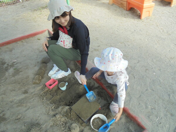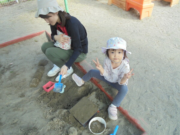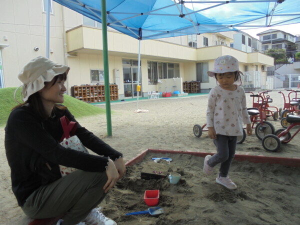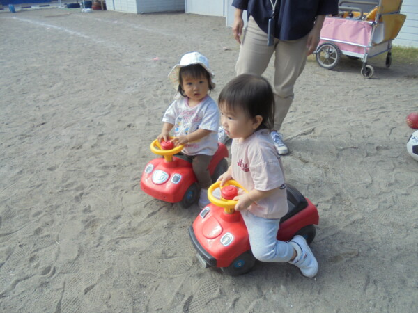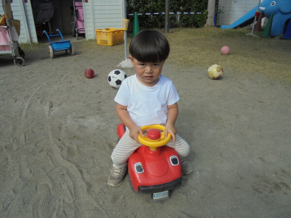 外遊びには、とても良い季節になりましたね。ごっこ遊びができるようになり、なりきっている子どもたちを見るとつい、笑ってしまいます。とってもかわいいですよ♡避難車で園庭をぐるっとまわってとても喜んでいました。みんなで楽しい時間を過ごしましょ。遊びに来てね♬