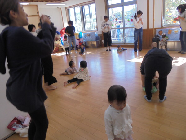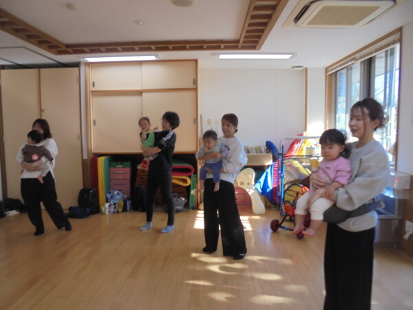 大好評の親子体操。16組の参加があり、多目的ホールがいっぱいになりました。ストレッチをしてからいよいよ体操の始まり。0歳のお友だちが多くママは抱っこしての体操。今日はちょっと筋肉痛かな?はる先生のパワーをいただいて親子で楽しい時間を過ごしました。12月はお休みです。また申し込んでくださいね。