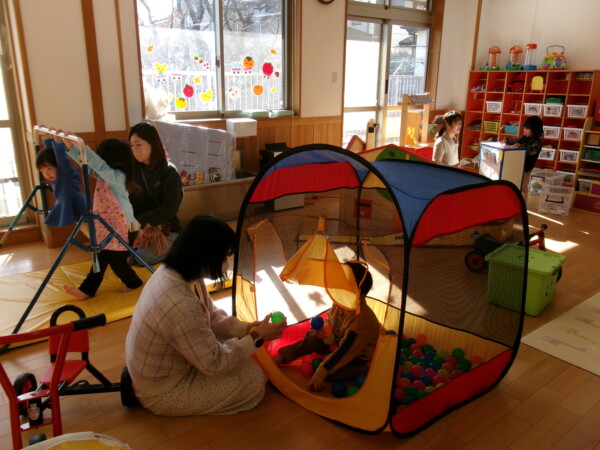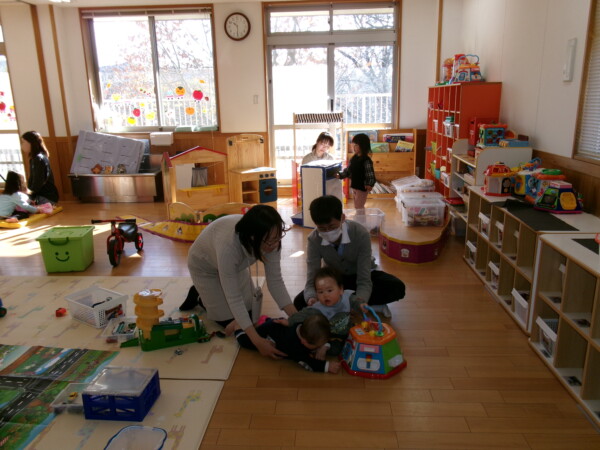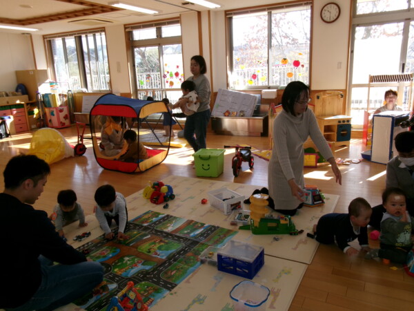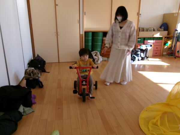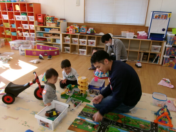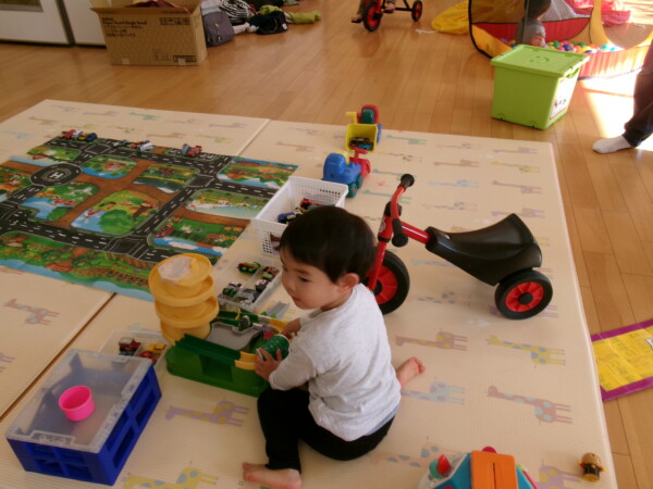 今年最後の園舎開放。ホールにおもちゃをいっぱいだして思い思いに遊びました。人気は、おままごとのセット。お友だちとパン屋さんごっこもしたね。三輪車も楽しかったね。お楽しみの時間のはたらくくるま、みんなの声が聞けて嬉しかったよ。これからもいっぱい、いっぱいあそぼうね。風邪を引かないように気を付けてね。良いお年をお迎えください。