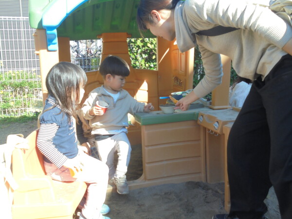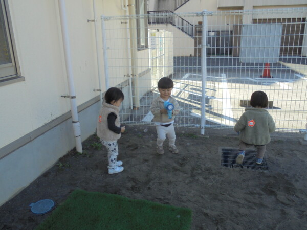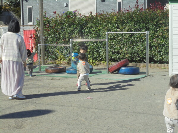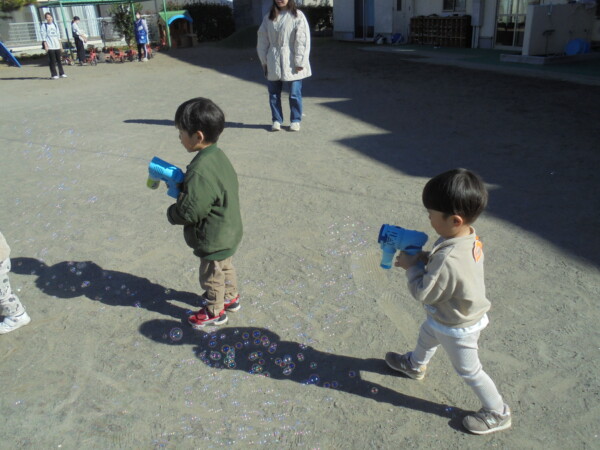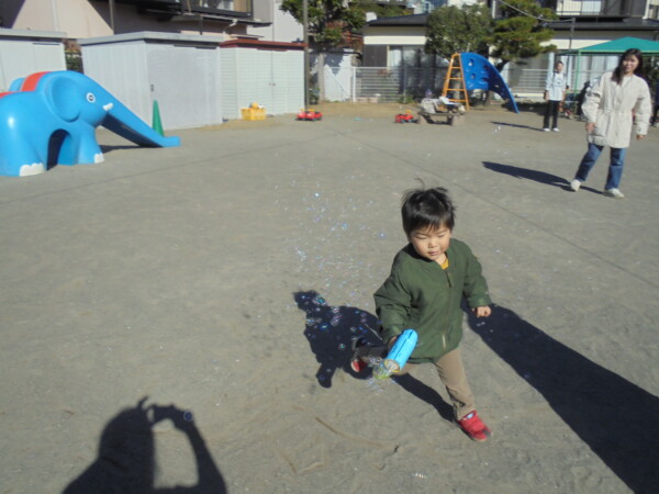 12月に入りましたが、温かい陽気が続いていて外遊びも気持ちが良いですね。三輪車やシャボン玉で遊んでお友だちも元気いっぱいでした。お楽しみのご本もしっかり見れるようになり、みんなに花丸をあげました。これから寒くなるかもしれませんが体調を崩さないようにまた遊びにきてくださいね。まってるよ~♪