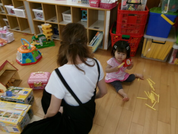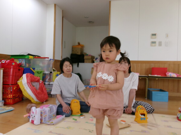 お部屋で楽しく遊びました。これから暑い日が続くときは、保育園のお部屋は涼しいですよ。遊びに来てください。