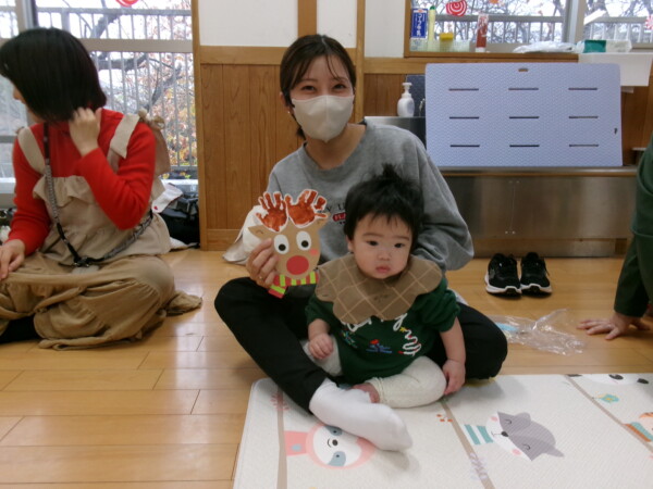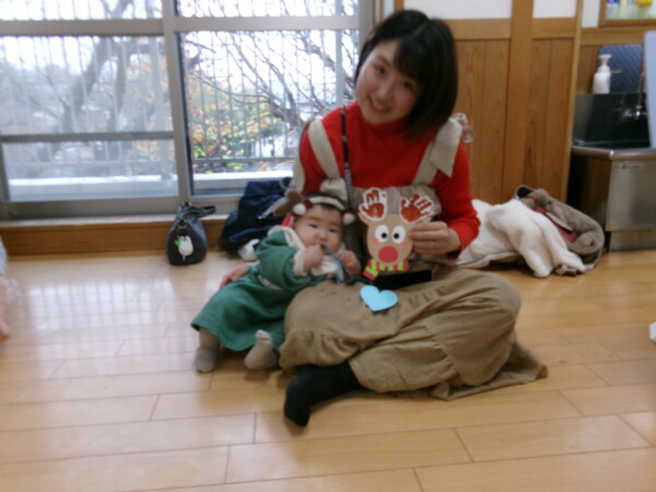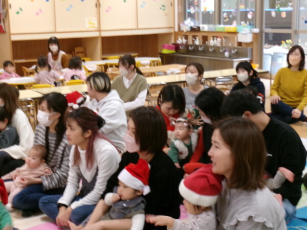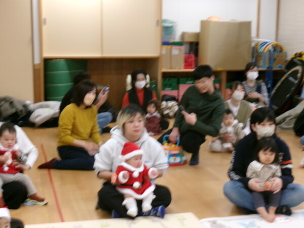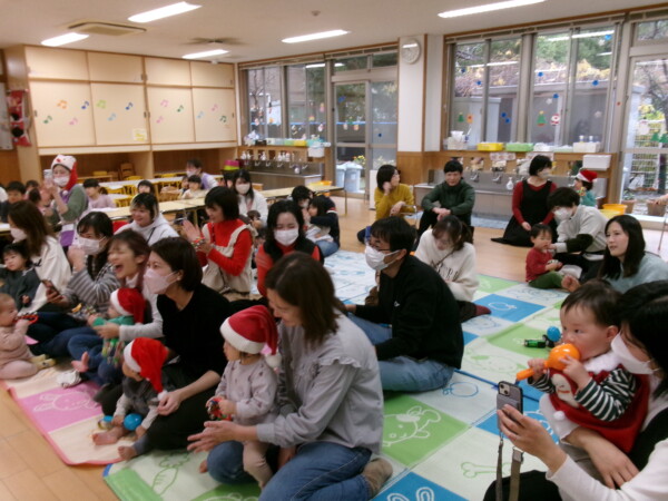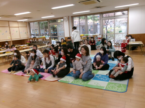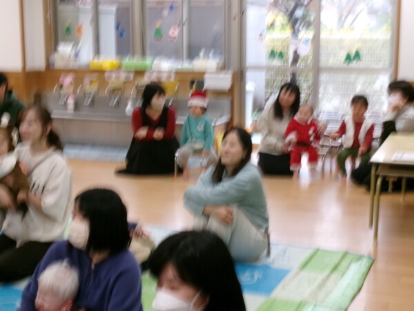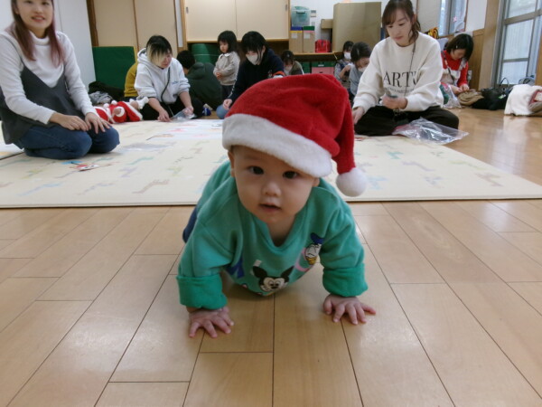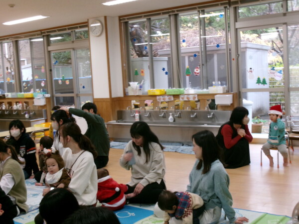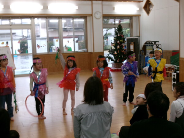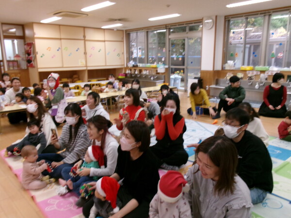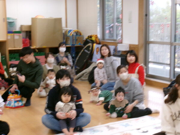 クリスマスを満喫した素敵な時間をみなさんと一緒に過ごすことが出来ました。第一部は、手遊び、そして手がたを使ったカード作り、初めて手がたをとるお友だちもいて少し大変でしたが、素敵なカードができました。手遊びはいつもみんなでやっている、たまご・サンタクロースはいそがしい・・・クリスマスバージョンでおこないました。お家でもみんあで楽しく演じて下さい。第二部は、先生方のハンドベル、オペラ、そして最後はさくら組さんの劇。盛りだくさんで行いました。いかがでしたか?さくら組さんの頑張る姿にたくさんの感動をもらいました。第三部はサンタさんからのプレゼント。みんな、ニコニコ。とても嬉しそうでした。今年も一年ありがとうございました。