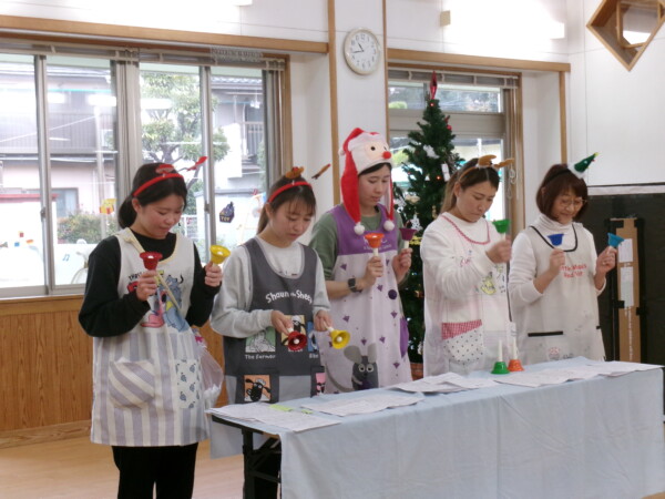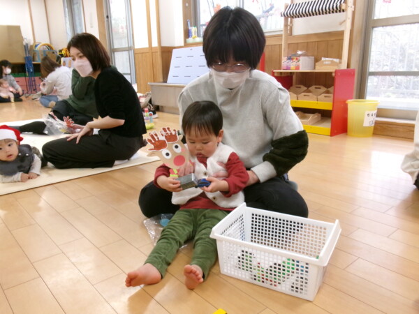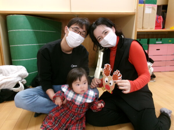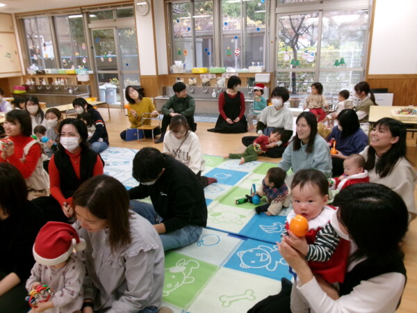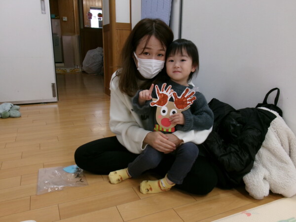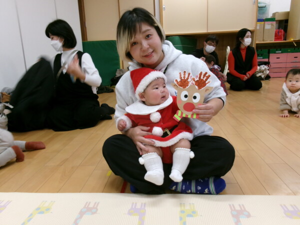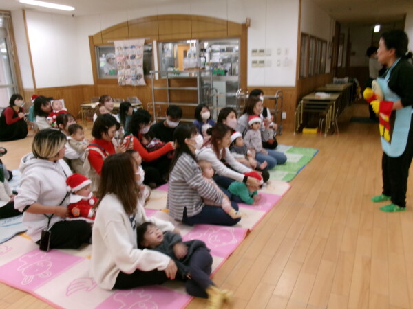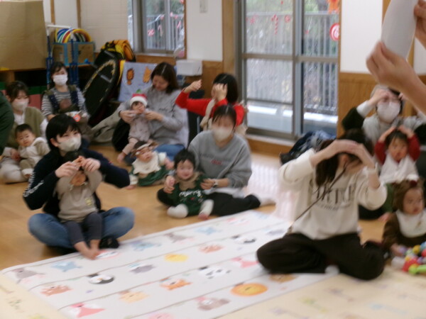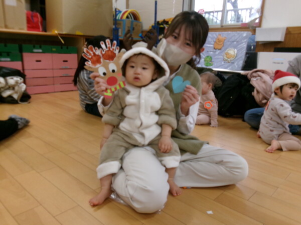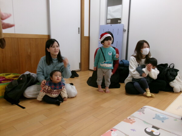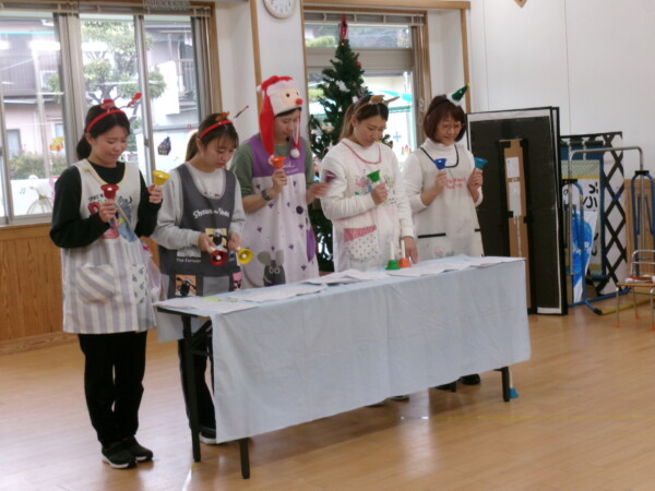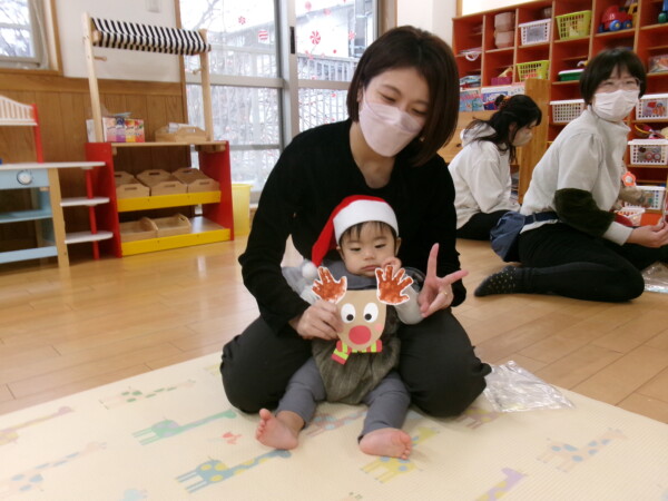 クリスマスを満喫した素敵な時間をみなさんと一緒に過ごすことが出来ました。第一部は、手遊び、そして手がたを使ったカード作り、初めて手がたをとるお友だちもいて少し大変でしたが、素敵なカードができました。手遊びはいつもみんなでやっている、たまご・サンタクロースはいそがしい・・・クリスマスバージョンでおこないました。お家でもみんあで楽しく演じて下さい。第二部は、先生方のハンドベル、オペラ、そして最後はさくら組さんの劇。盛りだくさんで行いました。いかがでしたか?さくら組さんの頑張る姿にたくさんの感動をもらいました。第三部はサンタさんからのプレゼント。みんな、ニコニコ。とても嬉しそうでした。今年も一年ありがとうございました。