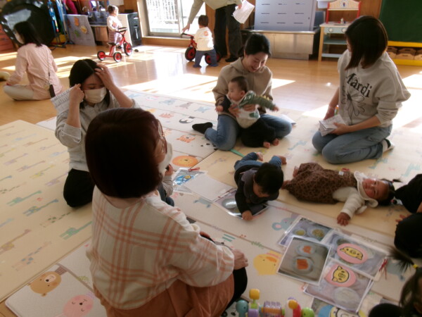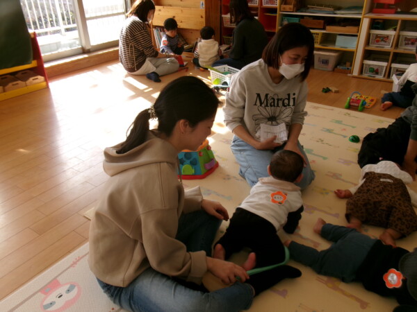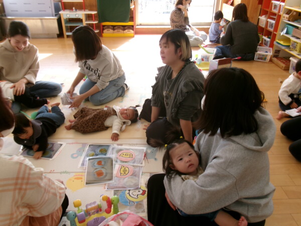 沢山のお友だちが遊びに来てくれました。離乳食の話や、おむつ替えの話など自分たちの思っていること、経験したことを話し合いました。園長先生もまじえて、話し合えてとても良かったと思います。これからも色々な事を話し合いながらホッとできる場所つくりを進めていきます。遊びに来てくださいね。