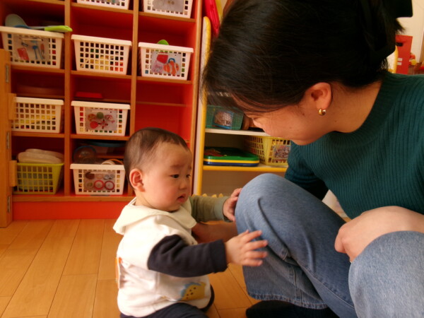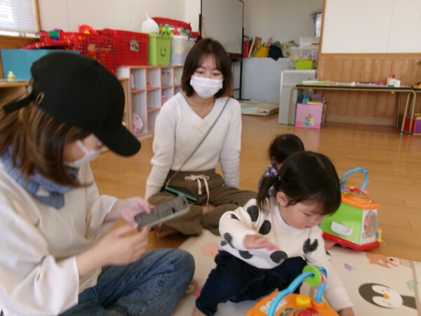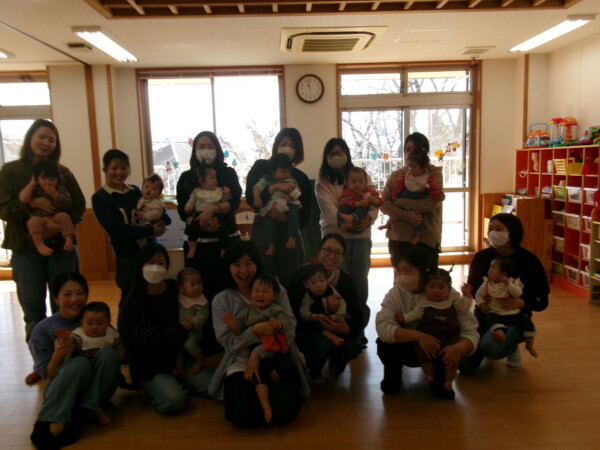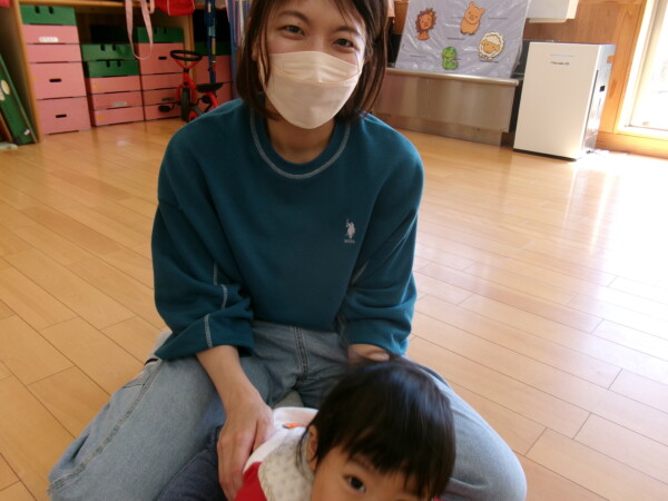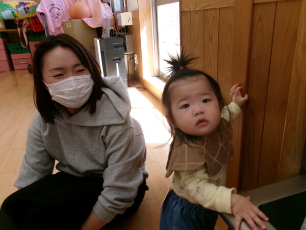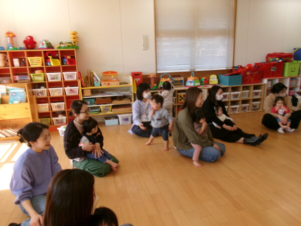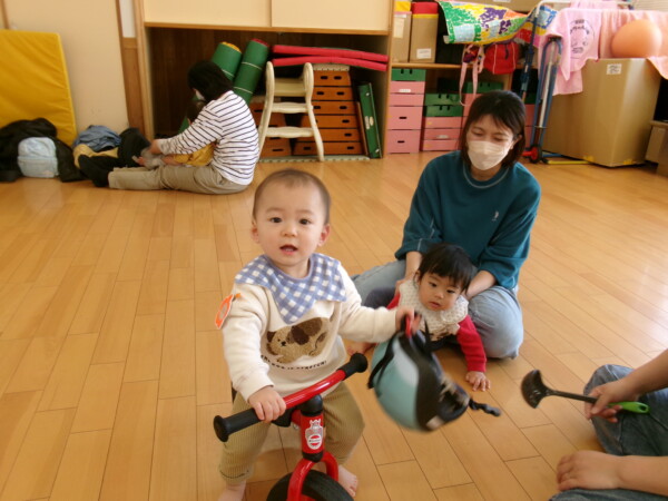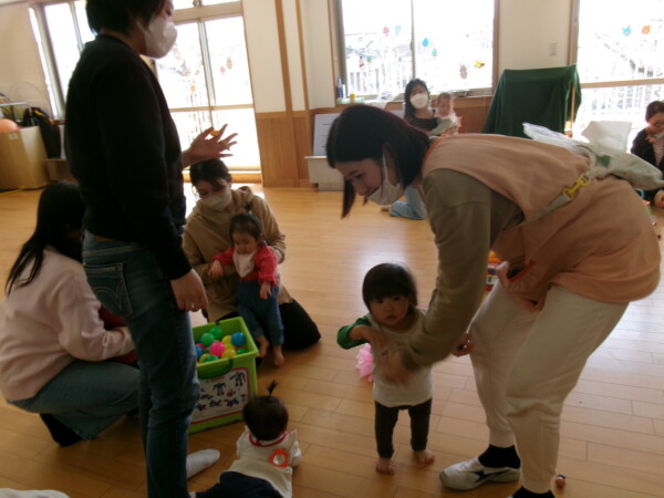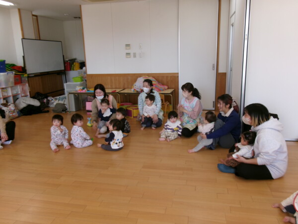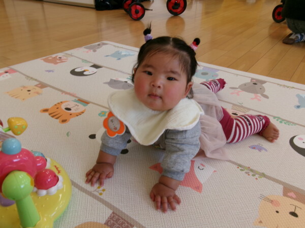 今日も多目的ホールにはお友だちがいっぱい。阿久和保育園の0歳児と交流保育を行いました。0歳のお友だちが、ドアを開けて入るなりびっくりした顔に変身!ちょっと、べそをかくお友だちがいました。いつもはあんなに、元気なひよこ組さんなのに固まってなかなか動き出しませんでした。でも、少したつと、おもちゃの方に目がいったらしく、元気になりました。一緒にダンスを踊ったりバルーンをしたり楽しい時間だったね。