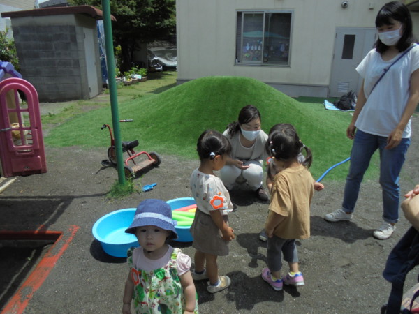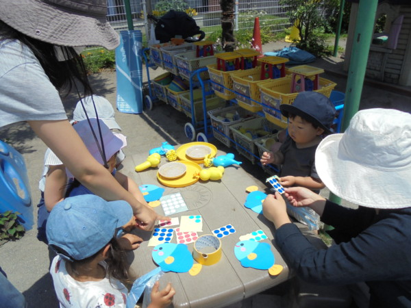 台風がやってきました。天気予報では朝からどしゃぶりの雨!!どうなるのか心配していましたが、少しそれた様子で時々雨は降りましたが火曜園庭開放を行う事ができました。水風船では、みんなで協力して水風船入れの水を運びました。小さ … “☆火曜園庭開放☆” の続きを読む