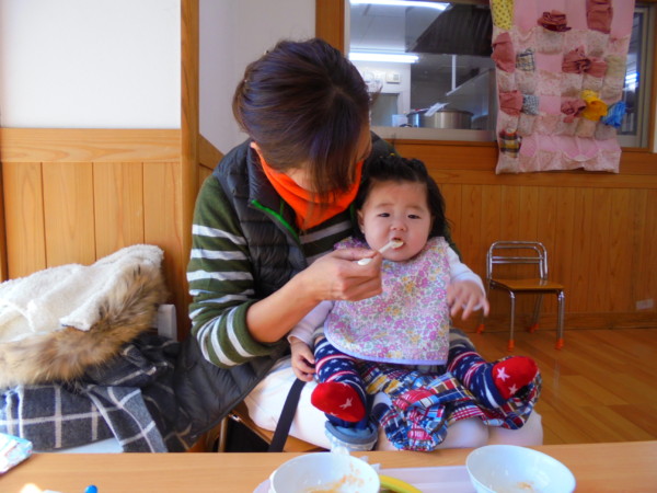 六か月のお友達が給食試食会に参加しました。もう一人のお友達がお休みになってしまい、少々寂しい試食会になってしまいましたが、六か月のお友達には、ゴックン期とモグモグ期の給食を用意し食べ比べて頂きました。はじめての給食、パク … “給食試食会” の続きを読む