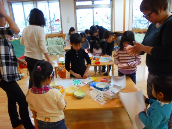 あいにくの天気で雨が降っていたにも関わらず、親子合わせて41名が遊びに来てくれました。今日は紙粘土で手形を取りました!紙粘土の形にこだわってハート形や車、さくらを作ったり、紙粘土にビーズや色んな形で作った粘土を貼り、それ … “土曜園舎開放” の続きを読む