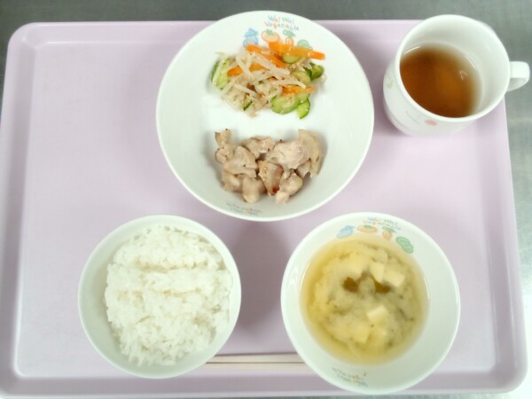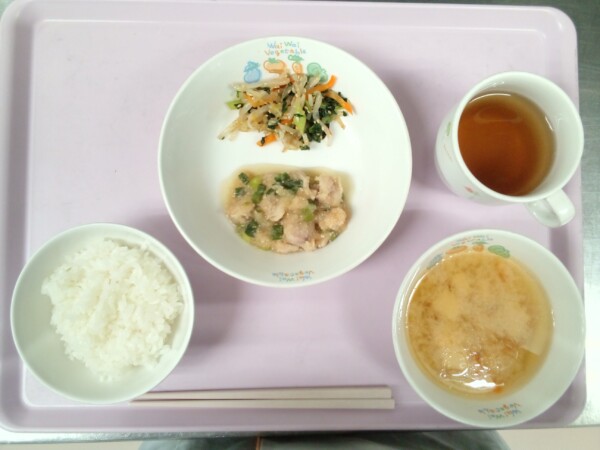 ごはん、鶏肉のみぞれ煮、もやしのナムル、味噌汁 だいこんの根には消化酵素のアミラーゼを含む消化を促進して胃腸のはたらきを整える作用があります。ひげ根の穴が深くないものを選ぶと良いでしょう