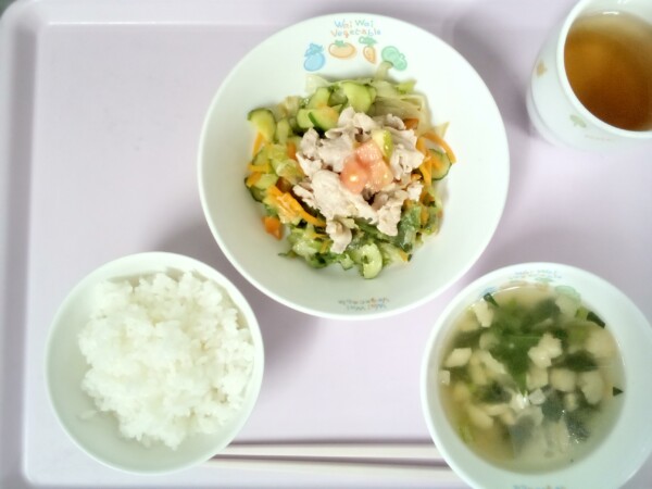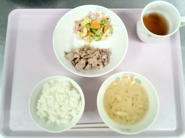 ごはん、豚肉のさっぱり煮、マカロニサラダ、味噌汁 きゅうりは95%以上の水分と豊富なカリウムが利尿に役立ちます。カリウムには体内の余分な塩分(ナトリウム)の排泄を促す効果もあり、高血圧予防にもはたらきます。 納品の関係で … “豚肉のさっぱり煮” の続きを読む