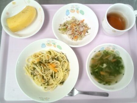 ごはん、魚のカレーマヨ焼き、醤油フレンチ、味噌汁 味噌汁に小松菜を使用しています。小松菜はカルシウムが非常に多く含まれているのが特徴で、骨粗しょう症の予防に役立ちます。抗酸化作用があり、かぜの予防などにも効果が期待できる … “魚のカレーマヨ焼き” の続きを読む