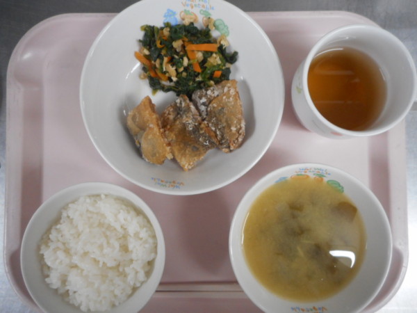 ごはん、味噌汁、竜田揚げ、千草煮・・・498kcal さんまの良質な脂質はDHA、EPAなどの不飽和脂肪酸を多く含み、記憶力の保持や動脈硬化・心筋梗塞・高血圧などの予防に効果的です。血合いに多く含まれるビタミンB12は貧 … “竜田揚げ” の続きを読む
