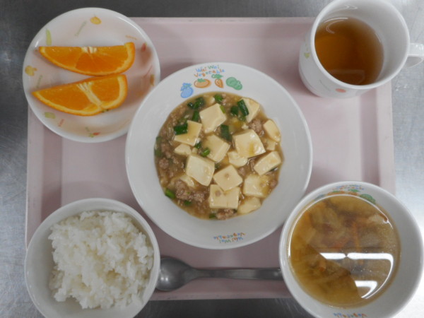 ごはん、野菜入りわかめスープ、麻婆豆腐、オレンジ・・・371kcal オレンジには、ビタミンCが豊富で、かぜ予防や美肌づくり、ストレスの解消に効果が期待できます。ビタミンB1とクエン酸も含むので、疲労回復にも一役買うでし … “麻婆豆腐” の続きを読む