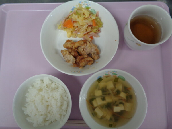 ごはん、豆腐と野菜のスープ、チキンのバーベキュー風、マカロニサラダ・・・376kcal スープににらを使用しています。にらはねぎの仲間なので、ねぎ類と栄養価は似ていますが、にらのほうがβカロテンを豊富に含みます。βカロテ … “チキンのバーベキュー風” の続きを読む