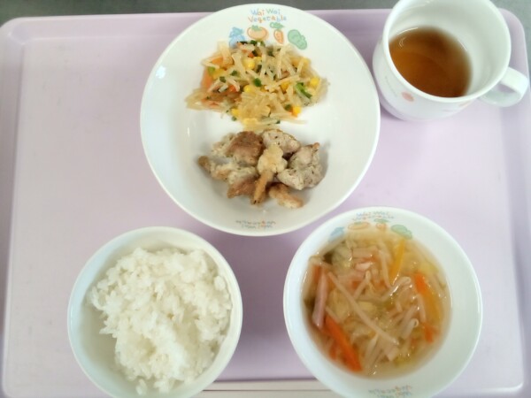 ごはん、ポークカレー、もやしときゅうりのゆかり和え・・・438kcal もやしはビタミンCを含むため、かぜ予防が期待できます。体内でコラーゲンを形成するはたらきもあり、美肌づくりに役立ちます。そのほか、微量ながらカルシウ … “ポークカレー” の続きを読む