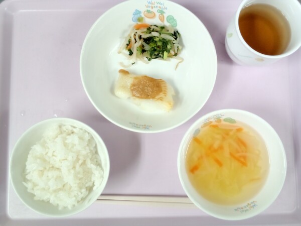 ごはん、カレイのごまみそ焼き、小松菜のおかか和え、春雨スープ 小松菜にはカルシウムが非常に多く含まれており、骨粗しょう症の予防に役立ちます。抗酸化作用があり、かぜの予防などにも効果が期待できるβ-カロテン、ビタミンCも豊 … “カレイのごまみそ焼き” の続きを読む
