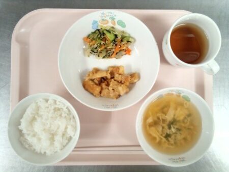 ごはん、味噌汁、鶏肉の甘辛煮、磯香和え・・・377kcal 鶏肉は必須アミノ酸をバランスよく含む、良質なたんぱく質が魅力の食材です。からだの抵抗力を高め、体調の回復にも効果があります。ビタミンA(レチノール)の含有率は牛 … “鶏肉の甘辛煮” の続きを読む