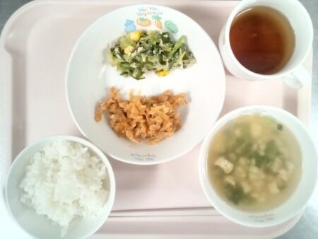ごはん、ほうれん草の野菜スープ、春雨入り麻婆豆腐、バナナ・・・411kcal ほうれん草は非常に栄養価が高い緑黄色野菜の代表格です。特にβカロテン、ビタミンC、鉄、カルシウムを豊富に含みます。βカロテン、ビタミンCは抗酸 … “春雨入り麻婆豆腐” の続きを読む