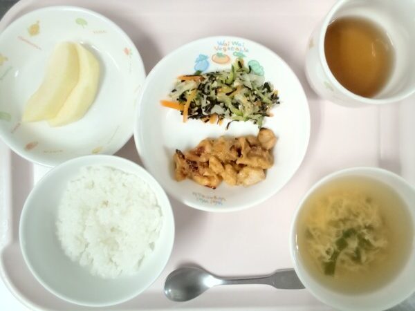 ごはん、味噌汁、鶏肉の甘辛煮、磯香和え・・・377kcal キャベツはからだに有益なさまざまなビタミンを含んでいます。特にビタミンCは多く、大きめの葉1枚で1日の必要量の約20%を摂取することができます。また、ビタミンK … “鶏肉の甘辛煮” の続きを読む