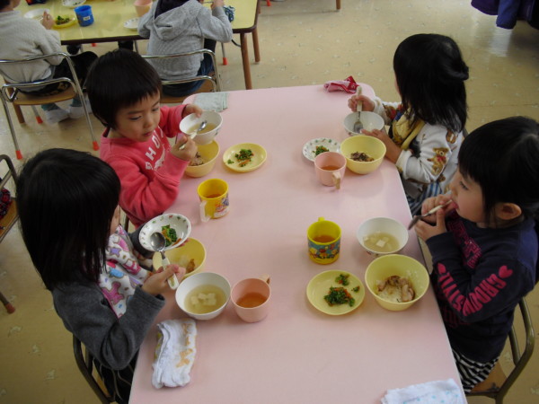 今日は卒園式の練習をしたり、りすくみさんとこあらくみさんが一緒に給食をたべました。