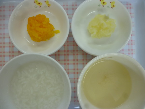 今日の給食はミートソーススパゲティ、ピラフ、キャベツメンチカツ、(アレルギー食、卵・乳は鶏の照り焼き)、フライドポテト、わかめとコーンのスープ(未満児のみ)、オレンジ、いちご、パイナップルです。離乳食(中期)は7分粥、かぼちゃ、じゃが芋ペースト、うわずみです。